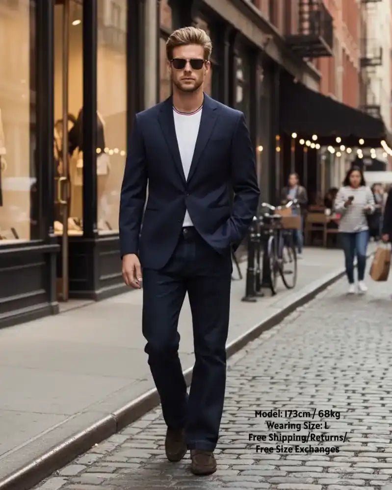 「パパ、なんか雰囲気変わった?」 (30代女性スタッフA / 商品企画) 夫に履かせたら、いつものダウンジャケット姿なのに急に洗練されて見えて驚きました。濃紺の光沢がすごく上品だから、スニーカー合わせでも子供っぽくなりません。