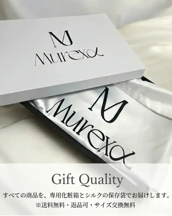 すべての商品を、専用の化粧箱とシルクの保存袋に包んで大切にお届けします。 商品が届いたその瞬間から、murexaの世界観をご堪能ください。