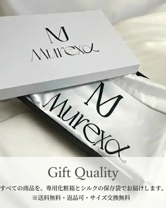 すべての商品を、専用の化粧箱とシルクの保存袋に包んで大切にお届けします。 商品が届いたその瞬間から、murexaの世界観をご堪能ください。