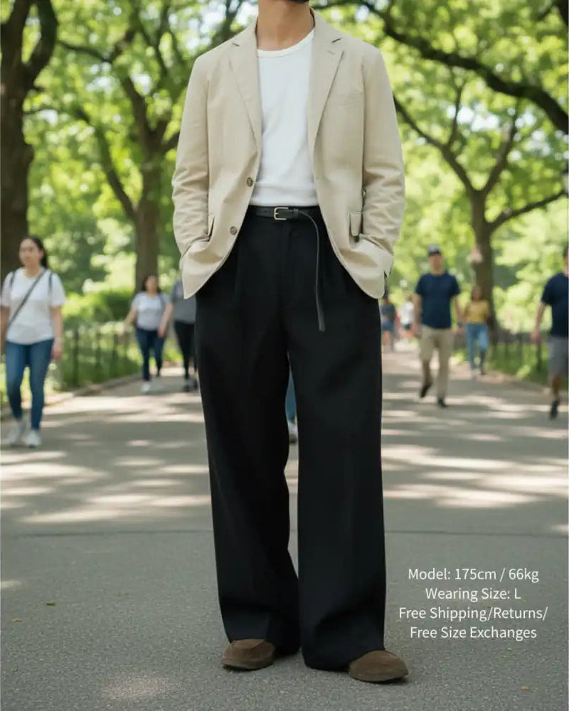「私の夫にこそ履かせたい!」 (30代女性スタッフB) 普通のワイドパンツは子供っぽくなりがちですが、これは生地に圧倒的なハリがあるから「きちんと感」が段違い。シワも全く気にならないので、ズボラな旦那さんでも常に清潔感をキープできます。